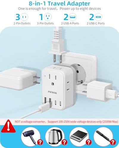 – **Versatile Compatibility:** Equipped with 4 AC outlets and 4 USB ports (including 2 USB-C), this travel adapter set allows you to charge multiple devices simultaneously. Say goodbye to carrying multiple chargers!